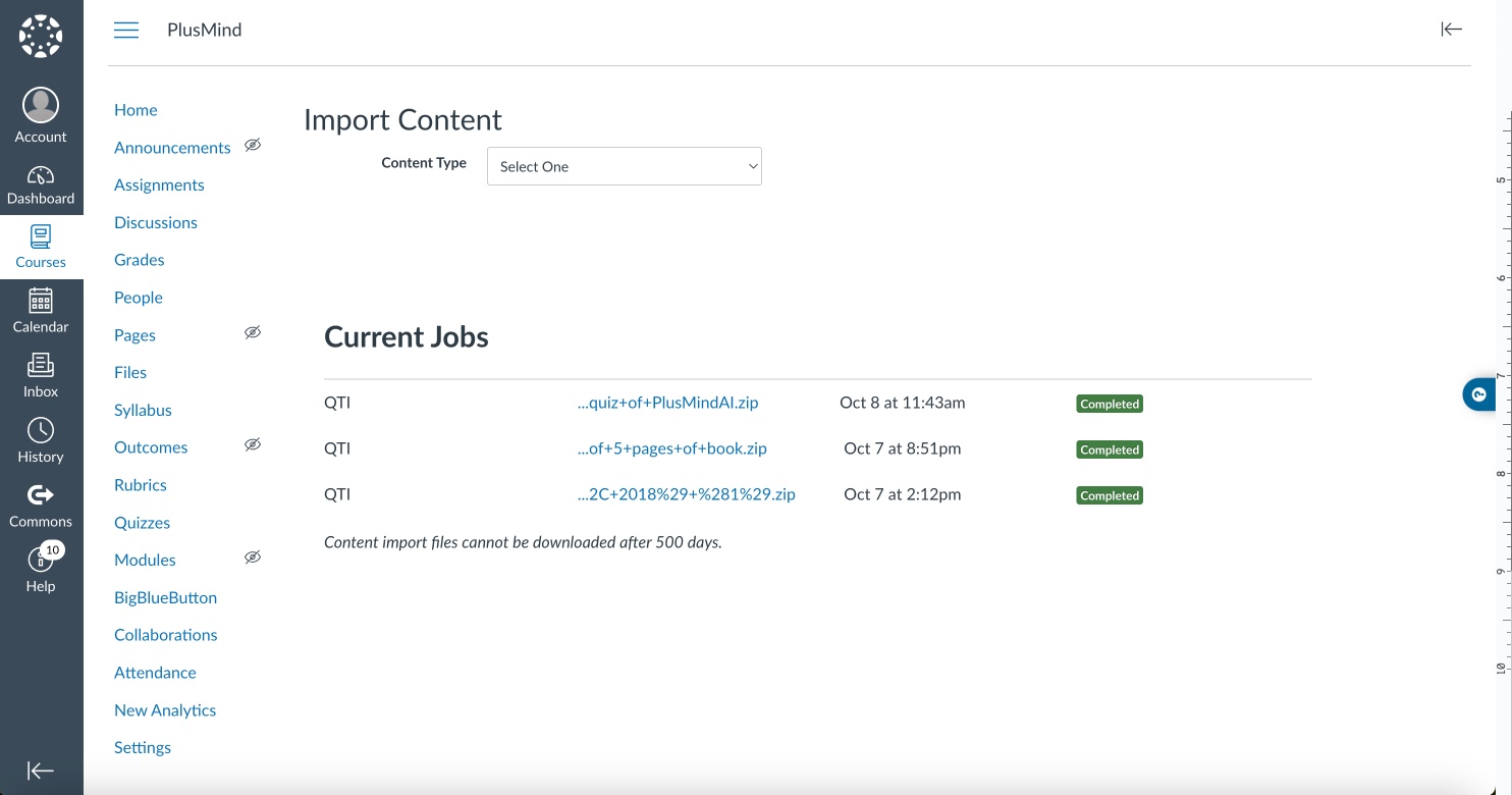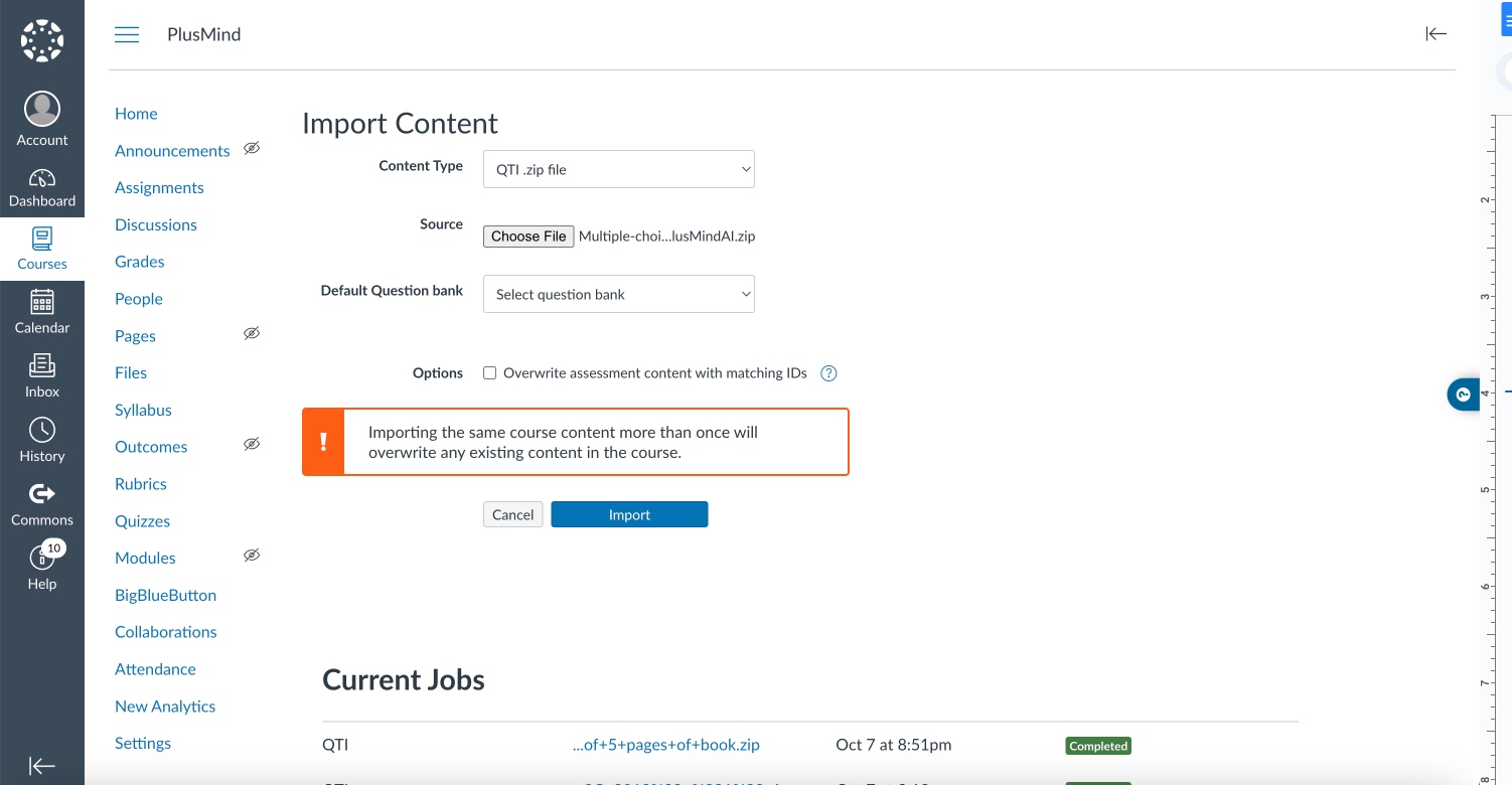 This article will guide you through importing your QTI zip file into Canvas. Note that this article won't cover the process of creating a QTI file using PlusMind AI. For that, refer to PlusMindAI FAQ. Let's dive in.