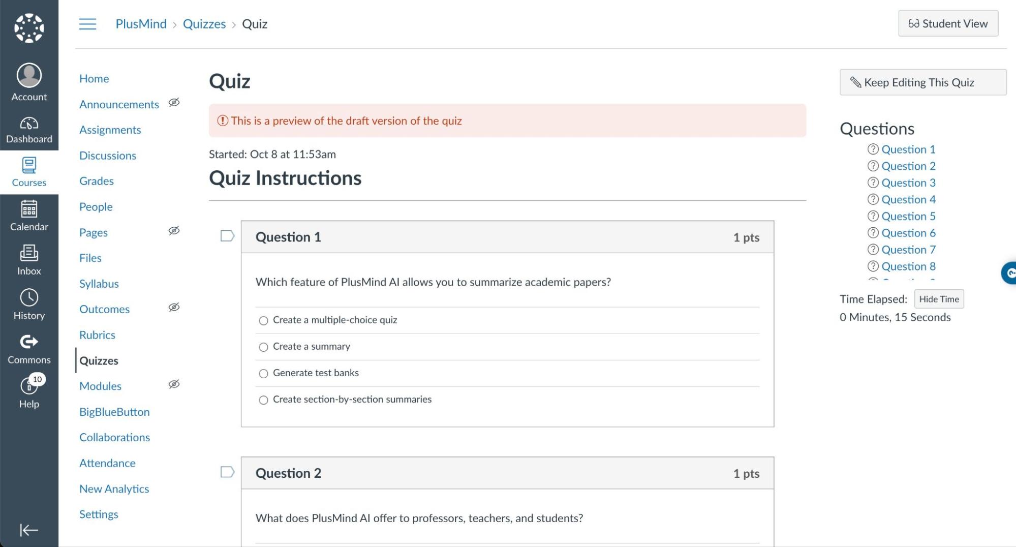 PlusMind AI provides a Chrome extension to transfer Quizzes to Canvas LMS.